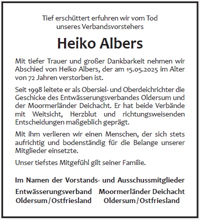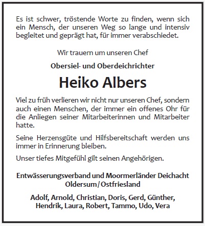 Wir trauern um unseren Obersiel- und Oberdeichrichter und unseren warmherzigen Chef
